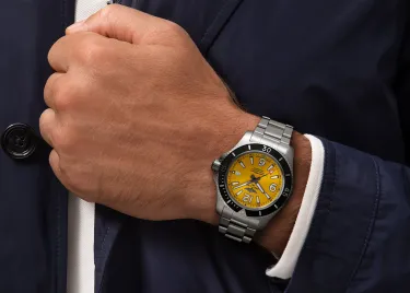 For Miamians who love the water, the Breitling Superocean Automatic 44 combines serious performance with a bright yellow dial that will give you the impression the sun is out even in the dead of winter. It has an impressive 1000-meter water resistance, which means you basically can do anything, anywhere with this timepiece. It comes in a 44mm stainless steel case and is powered by an automatic movement.