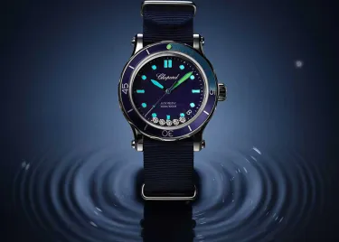 The Happy Sport was designed by Chopard’s Caroline Scheufele in 1993 and is as fun and sporty today as it was back then thanks to its mobile diamonds that spin across the dial. This version has a real Miami vibe with its different shades of blue and blue luminescent touches that light up at night. The Happy Sport Ocean also has a water resistance of 300 meters for all your ocean activities.