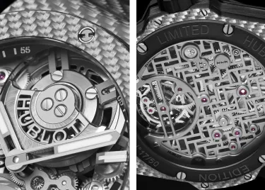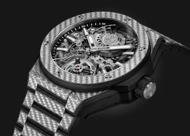 When we saw this watch, our heart started to beat much faster. It's hard to describe what we felt. Maybe the feeling of being on a rollercoaster or in a Formula 1 car. Carbon is very popular in motorsport and the new Big Bang Integrated Tourbillon Full Carbon is, as the name suggests, "full carbon." Although we know that the manufacturer is always pushing the boundaries of material experimentation. It surprises us every time!