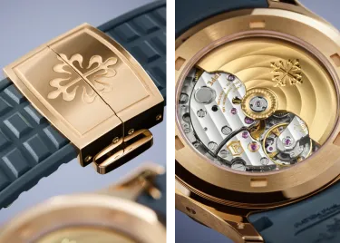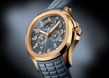 ...for the Aquanaut Luce collection! This unset rose gold timepiece features a blue-gray dial and a matching bracelet. The 39.9mm case houses the automatic caliber 26-330 S QA LU, with a central 21-carat gold rotor, and the annual calendar module with moon phases. The latter is inverted in the case, giving the calendar indications a different layout from other Patek Philippe watches with this complication. This very pleasant model is so accurate that the moon phase indicator deviates from the actual lunar cycle by only one day every 122 years (we have plenty of time to see that coming). A unique unisex model for unique people. And yes!