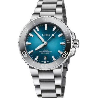 Oris Aquis Date 39.5 mm with a Stainless steel case and bracelet, Blue dial and Automatic movement. The watch comes with original box and papers.