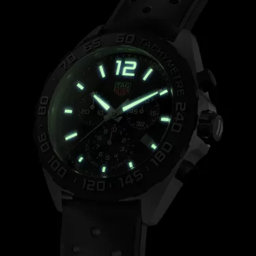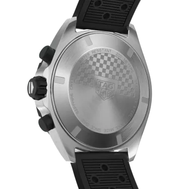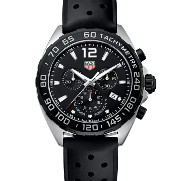 A watch with the power and precision of a Formula 1 race car, this 43mm chronograph is for the perfection-driven. The tarmac-black dial has three counters, measuring permanent seconds, hours, minutes and 1/10ths of a second. The tachymeter scale on the bezel enables ultra-accurate distance and speed readings. “Easy grip” pushbuttons and steel screw-down crown are designed for no-fuss handling, even with racing gloves on.