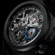 Zenith Defy El Primero 21 self-winding automatic watch, features a 44mm ceramic case surrounding a skeletonized dial on a black alligator strap with a ceramic deployant buckle. Functions include hours, minutes, small-seconds, chronograph and power reserve indicator.